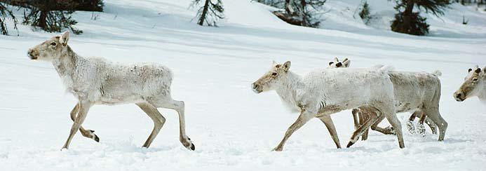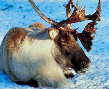 Another mammal species that prefers the cold northern lands is the reindeer or caribou. Reindeer are herd animals and live in groups of thousands during their migration when they travel more than 3000 miles to find better sources of food.