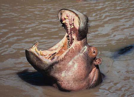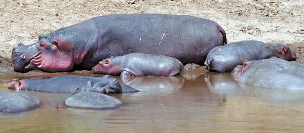 Baby hippos are very cute but adult hippos are very dangerous! They kill more people than any other wild animal in Africa. They are not carnivores but instead eat only plants so the killing can be due to fright or anger. It would not be safe to go into a river filled with hippos.